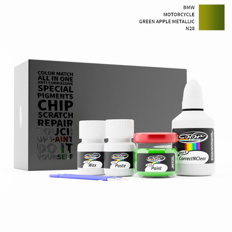 Neem afscheid van steenslag en krassen op uw BMW Motorcycle Green Apple Metallic N28. Met gepatenteerde Duitse technologie lost Color N Drive uw probleem op in 3 eenvoudige stappen. Elke KIT wordt op maat bereid volgens de originele lakkleur van uw fabrikant.
