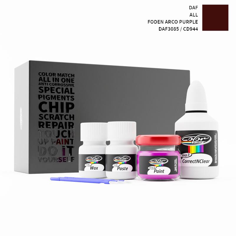 Neem afscheid van steenslag en krassen op uw DAF ALL Foden Arco Purple DAF3085 / CD944. Met gepatenteerde Duitse technologie lost Color N Drive uw probleem op in 3 eenvoudige stappen. Elke KIT wordt op maat bereid volgens de originele lakkleur van uw fabrikant.