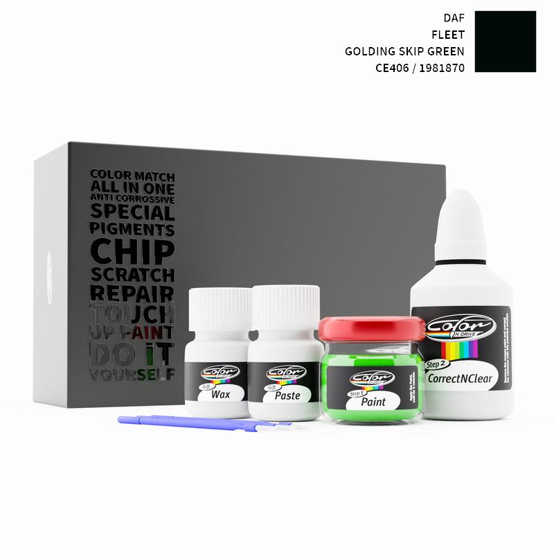 Ons gepatenteerde oplossingssysteem behandelt alleen de speciale lak die wij voor uw DAF Fleet Golding Skip Green 1981870 / CE406 mengen en tast de fabriekslak van uw DAF niet aan. Met deze methode zijn wij er zeker van dat u de kleur van uw DAF Fleet Golding Skip Green 1981870 / CE406 niet kunt beschadigen en dat u reparaties als een professional kunt uitvoeren op uw DAF met de kleur GOLDING SKIP GREEN.