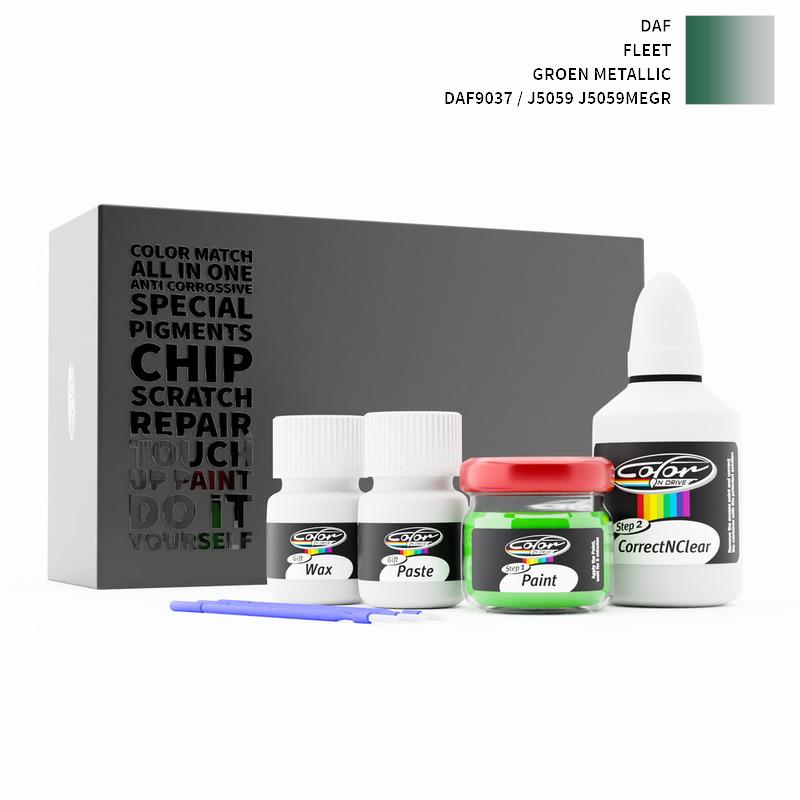 Neem afscheid van steenslag en krassen op uw DAF Fleet Groen Metallic DAF9037 / J5059 J5059MEGR. Met gepatenteerde Duitse technologie lost Color N Drive uw probleem op in 3 eenvoudige stappen. Elke KIT wordt op maat bereid volgens de originele lakkleur van uw fabrikant.