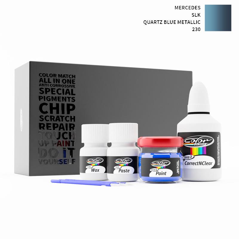 Neem afscheid van steenslag en krassen op uw Mercedes SLK Quartz Blue Metallic 230. Met gepatenteerde Duitse technologie lost Color N Drive uw probleem op in 3 eenvoudige stappen. Elke KIT wordt op maat bereid volgens de originele lakkleur van uw fabrikant.