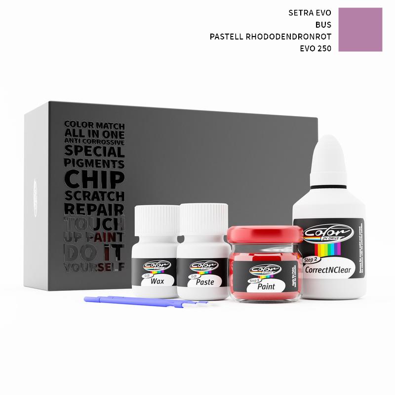 Ons gepatenteerde oplossingssysteem behandelt alleen de speciale lak die wij voor uw Setra Evo BUS Pastell Rhododendronrot EVO 250 mengen en tast de fabriekslak van uw Setra Evo niet aan. Met deze methode zijn wij er zeker van dat u de kleur van uw Setra Evo BUS Pastell Rhododendronrot EVO 250 niet kunt beschadigen en dat u reparaties als een professional kunt uitvoeren op uw Setra Evo met de kleur PASTELL RHODODENDRONROT.