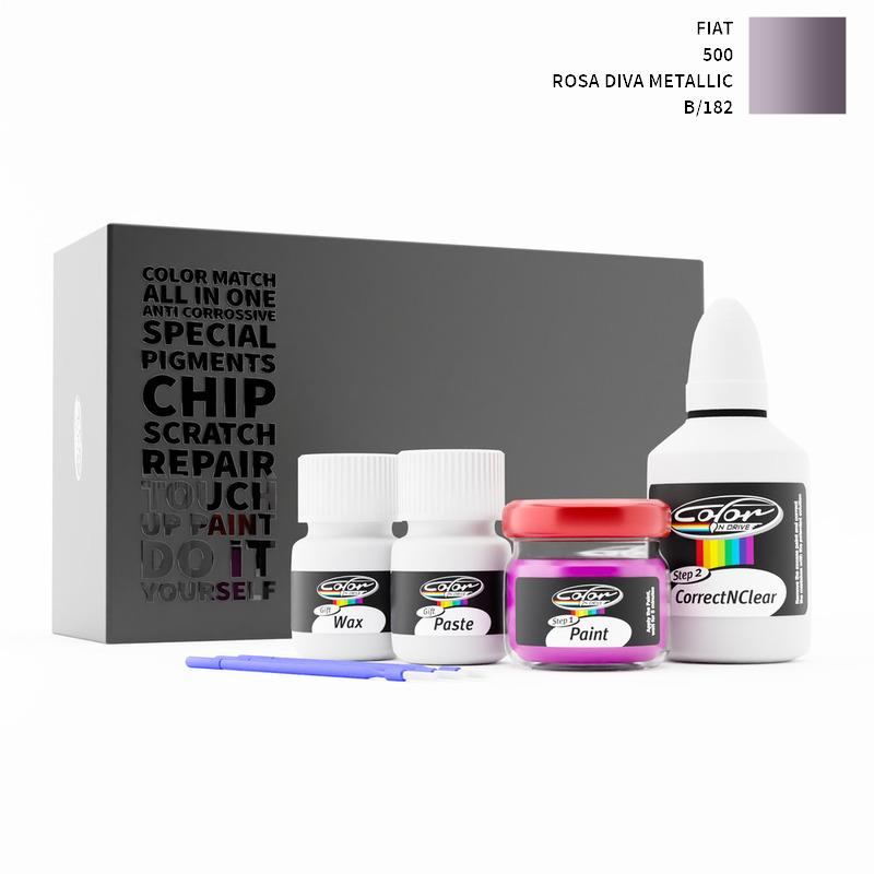 Our patented solution system only treats the special paint we mix for your Fiat 500 Rosa Diva Metallic 182/B and does not interfere with your factory paint. By this method we are sure that you can not harm your Fiat 500 Rosa Diva Metallic 182/B Color and you can do repairs like a pro for your Fiat with ROSA DIVA METALLIC color.