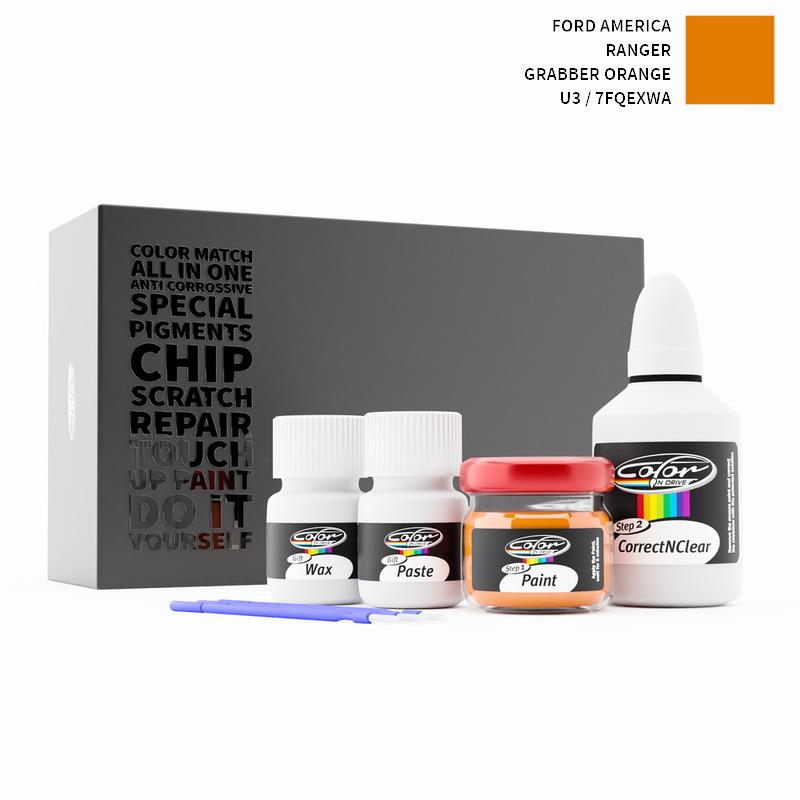 Our patented solution system only treats the special paint we mix for your Ford America Ranger Grabber Orange U3 / 7FQEXWA and does not interfere with your factory paint. By this method we are sure that you can not harm your Ford America Ranger Grabber Orange U3 / 7FQEXWA Color and you can do repairs like a pro for your Ford America with GRABBER ORANGE color.