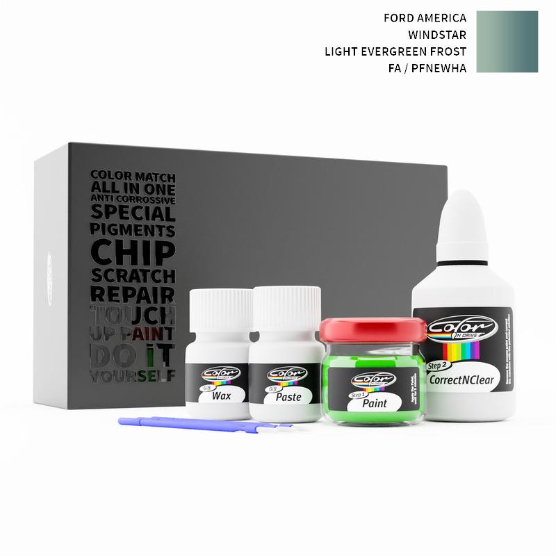 Our patented solution system only treats the special paint we mix for your Ford America Windstar Light Evergreen Frost FA / PFNEWHA and does not interfere with your factory paint. By this method we are sure that you can not harm your Ford America Windstar Light Evergreen Frost FA / PFNEWHA Color and you can do repairs like a pro for your Ford America with LIGHT EVERGREEN FROST color.