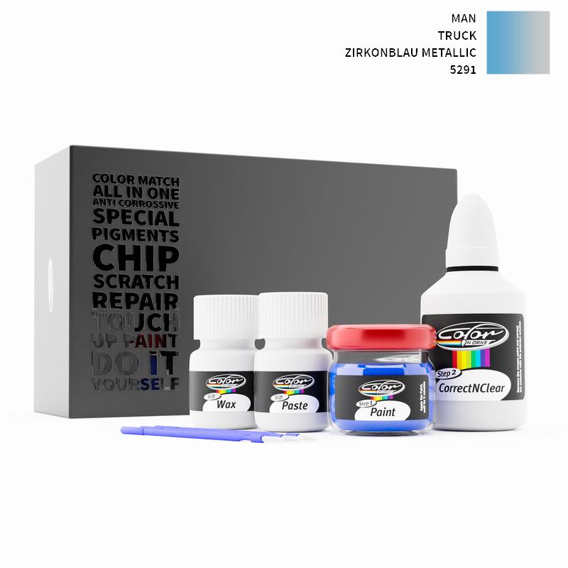 Our patented solution system only treats the special paint we mix for your MAN Truck Zirkonblau Metallic 5291 and does not interfere with your factory paint. By this method we are sure that you can not harm your MAN Truck Zirkonblau Metallic 5291 Color and you can do repairs like a pro for your MAN with ZIRKONBLAU METALLIC color.