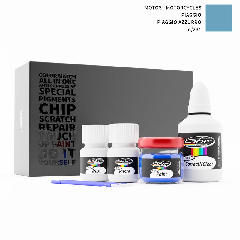Say bye to your stone chips and scratches in your Motos - Motorcycles Piaggio Piaggio Azzurro 231/A. With German patented technology Color N Drive puts an end to your problem in 3 basic steps. Evey KIT is custom prepared in line with your manufacturer's choice on original paint brand.
