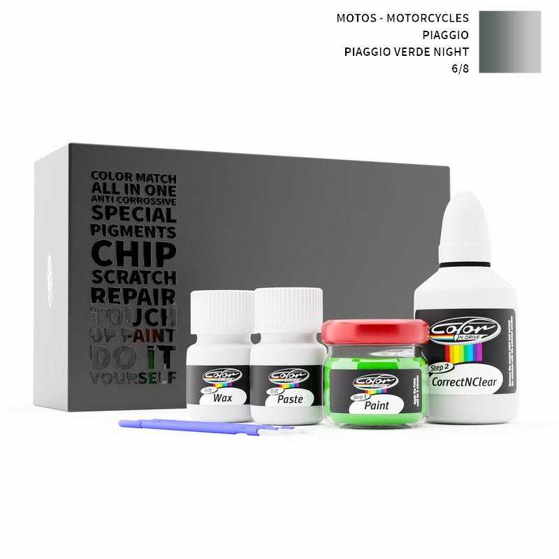 Say bye to your stone chips and scratches in your Motos - Motorcycles Piaggio Piaggio Verde Night 6/8. With German patented technology Color N Drive puts an end to your problem in 3 basic steps. Evey KIT is custom prepared in line with your manufacturer's choice on original paint brand.