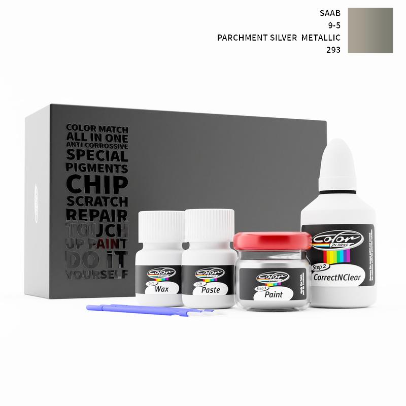 Our patented solution system only treats the special paint we mix for your Saab 9-5 Parchment Silver Metallic 293 and does not interfere with your factory paint. By this method we are sure that you can not harm your Saab 9-5 Parchment Silver Metallic 293 Color and you can do repairs like a pro for your Saab with PARCHMENT SILVER METALLIC color.