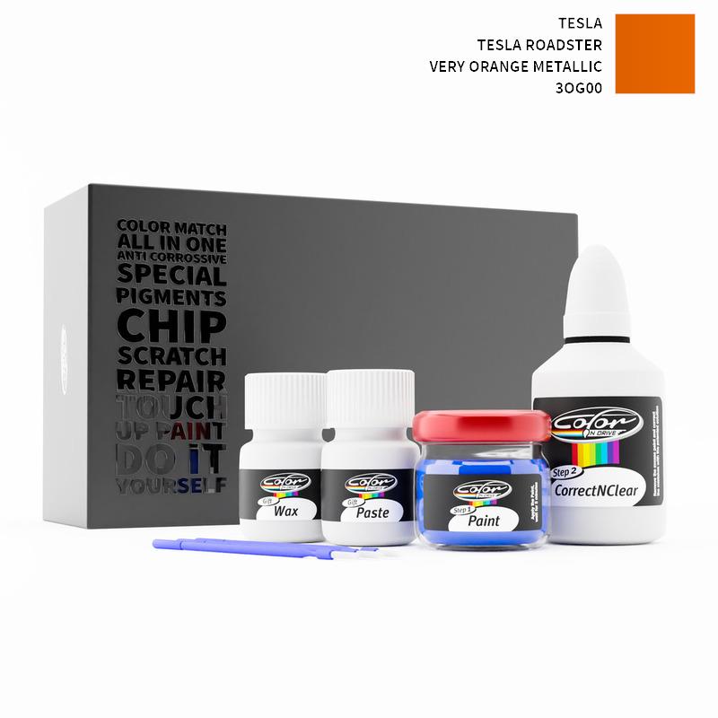 Our patented solution system only treats the special paint we mix for your Tesla Tesla Roadster Very Orange Metallic 3OG00 and does not interfere with your factory paint. By this method we are sure that you can not harm your Tesla Tesla Roadster Very Orange Metallic 3OG00 Color and you can do repairs like a pro for your Tesla with VERY ORANGE METALLIC color.