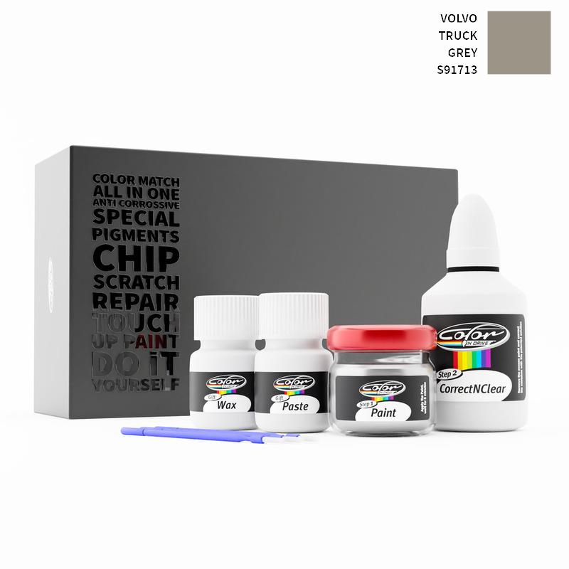 Our patented solution system only treats the special paint we mix for your Volvo Truck Grey S91713 and does not interfere with your factory paint. By this method we are sure that you can not harm your Volvo Truck Grey S91713 Color and you can do repairs like a pro for your Volvo with GREY color.