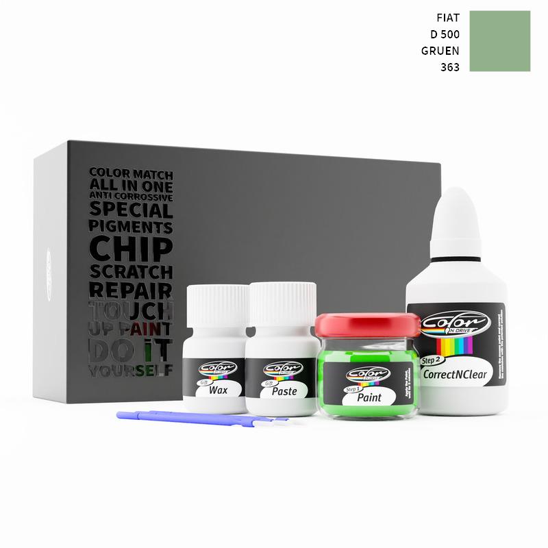 Unser patentiertes Lösungssystem behandelt nur den speziellen Lack, den wir für Ihren Fiat 500 D Gruen 363 mischen, und beeinträchtigt nicht die Farbe des Herstellers. Wir sind uns sicher, dass Sie mit dieser Methode die Farbe Ihres Fiat 500 D Gruen 363 nicht beschädigen können und Ausbesserungen an Ihrem Fiat mit der Farbe GRUEN wie ein Profi vornehmen können.