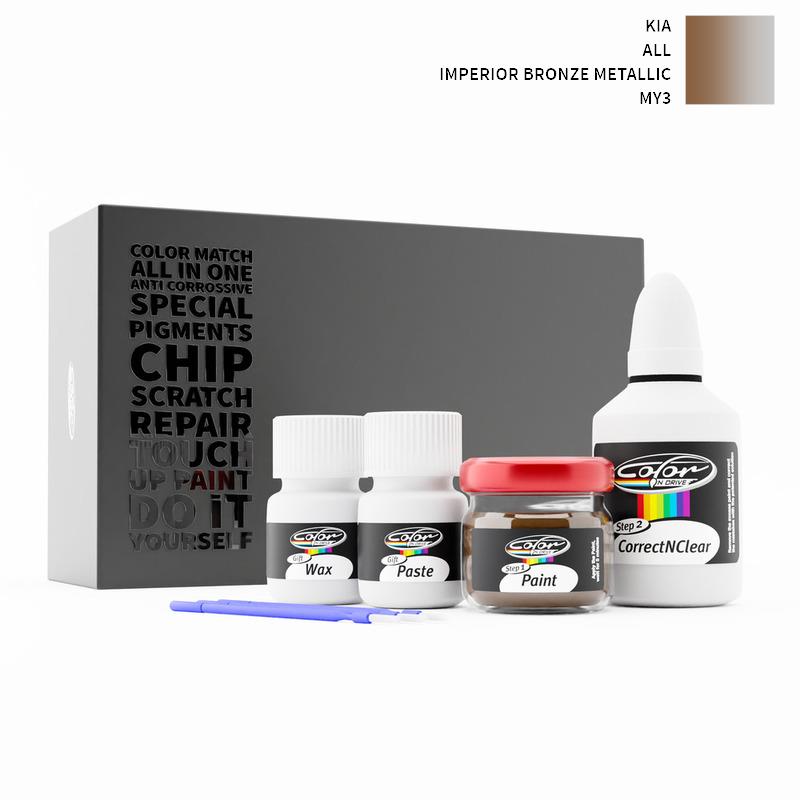 Neem afscheid van steenslag en krassen op uw KIA ALL Imperior Bronze Metallic MY3. Met gepatenteerde Duitse technologie lost Color N Drive uw probleem op in 3 eenvoudige stappen. Elke KIT wordt op maat bereid volgens de originele lakkleur van uw fabrikant.