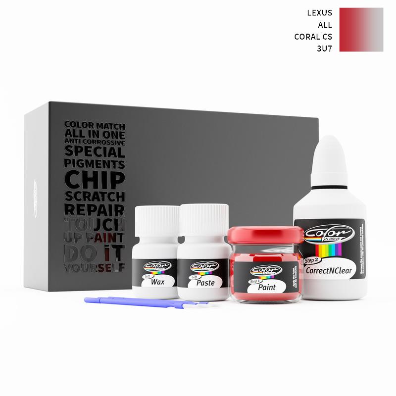 Neem afscheid van steenslag en krassen op uw Lexus ALL Coral Cs 3U7. Met gepatenteerde Duitse technologie lost Color N Drive uw probleem op in 3 eenvoudige stappen. Elke KIT wordt op maat bereid volgens de originele lakkleur van uw fabrikant.