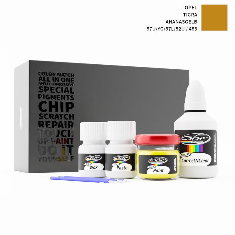 Neem afscheid van steenslag en krassen op uw Opel Tigra Ananasgelb 485 / 57U/YG/57L/52U. Met gepatenteerde Duitse technologie lost Color N Drive uw probleem op in 3 eenvoudige stappen. Elke KIT wordt op maat bereid volgens de originele lakkleur van uw fabrikant.