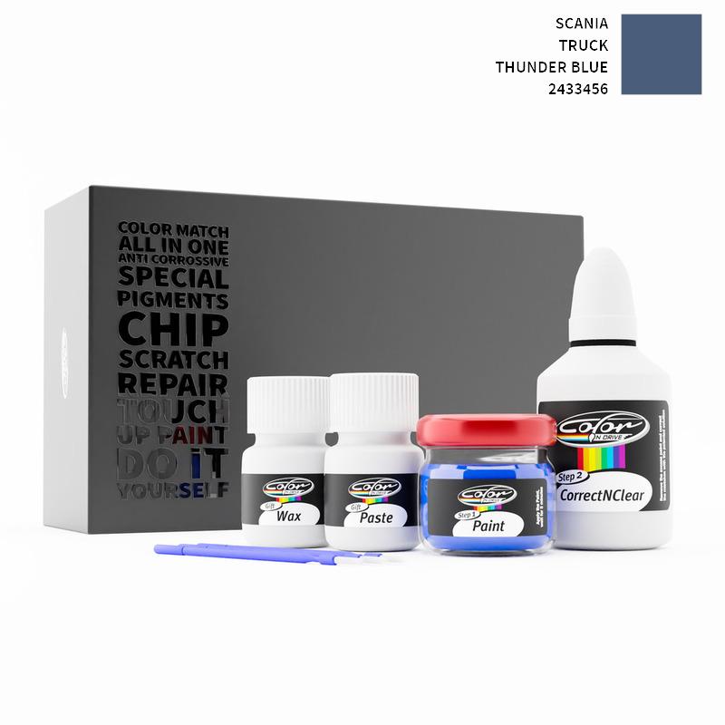 Ons gepatenteerde oplossingssysteem behandelt alleen de speciale lak die wij voor uw Scania Truck Thunder Blue 2433456 mengen en tast de fabriekslak van uw Scania niet aan. Met deze methode zijn wij er zeker van dat u de kleur van uw Scania Truck Thunder Blue 2433456 niet kunt beschadigen en dat u reparaties als een professional kunt uitvoeren op uw Scania met de kleur THUNDER BLUE.