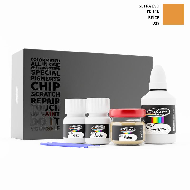 Neem afscheid van steenslag en krassen op uw Setra Evo Truck Beige B23. Met gepatenteerde Duitse technologie lost Color N Drive uw probleem op in 3 eenvoudige stappen. Elke KIT wordt op maat bereid volgens de originele lakkleur van uw fabrikant.