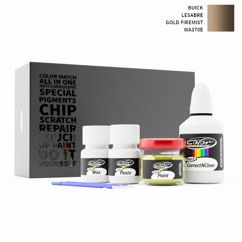 Si ha det til steinsprut og riper på din Buick Lesabre Gold Firemist WA370E. Med patentert tysk teknologi løser Color N Drive problemet ditt i 3 enkle trinn. Hvert KIT er spesialtilvirket i samsvar med bilprodusentens originale lakkfarge.