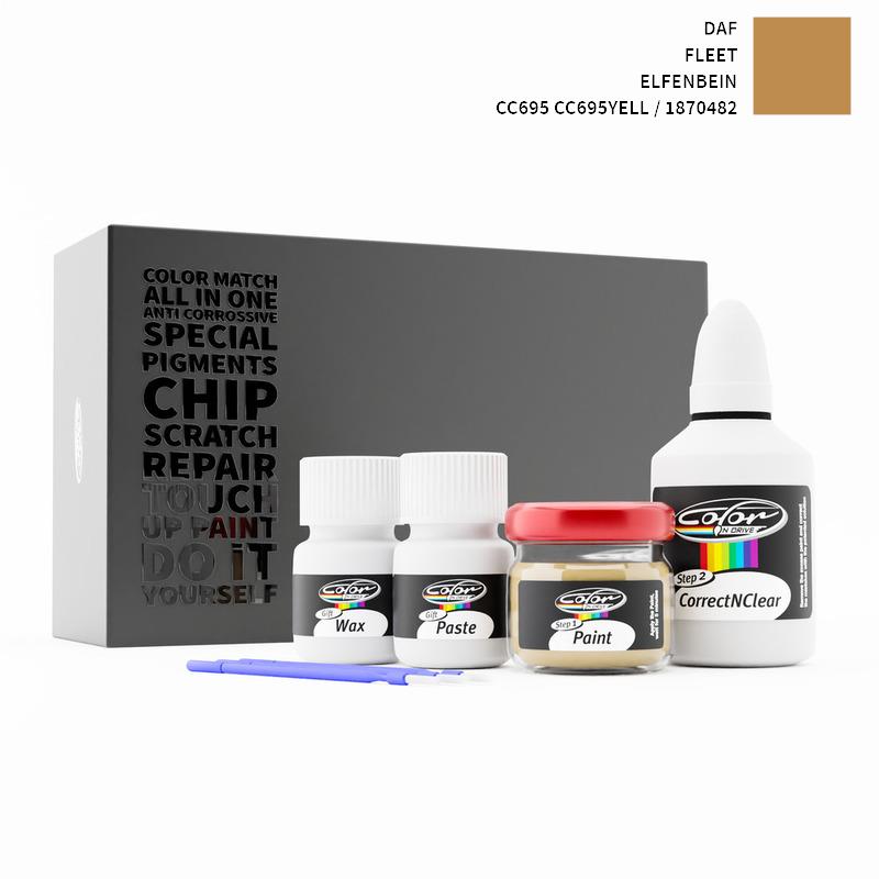 Si ha det til steinsprut og riper på din DAF Fleet Elfenbein 1870482 / CC695 CC695YELL. Med patentert tysk teknologi løser Color N Drive problemet ditt i 3 enkle trinn. Hvert KIT er spesialtilvirket i samsvar med bilprodusentens originale lakkfarge.