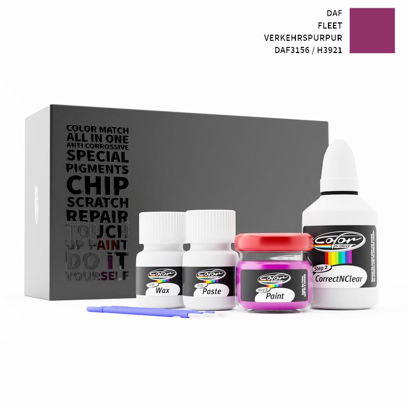 Si ha det til steinsprut og riper på din DAF Fleet Verkehrspurpur DAF3156 / H3921. Med patentert tysk teknologi løser Color N Drive problemet ditt i 3 enkle trinn. Hvert KIT er spesialtilvirket i samsvar med bilprodusentens originale lakkfarge.