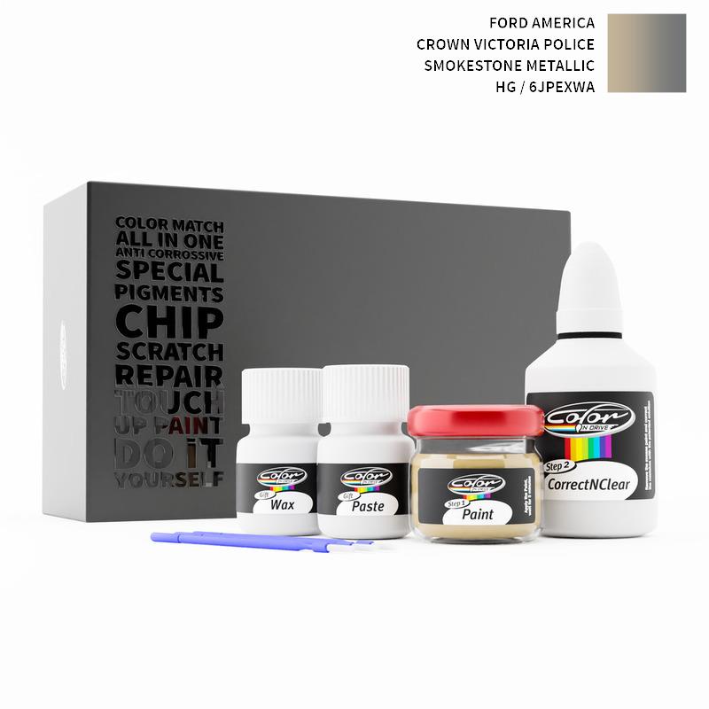 Si ha det til steinsprut og riper på din Ford America Crown Victoria Police Smokestone Metallic HG / 6JPEXWA. Med patentert tysk teknologi løser Color N Drive problemet ditt i 3 enkle trinn. Hvert KIT er spesialtilvirket i samsvar med bilprodusentens originale lakkfarge.