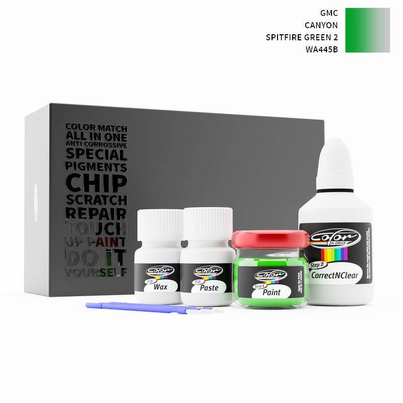 Si ha det til steinsprut og riper på din GMC Canyon Spitfire Green 2 WA445B. Med patentert tysk teknologi løser Color N Drive problemet ditt i 3 enkle trinn. Hvert KIT er spesialtilvirket i samsvar med bilprodusentens originale lakkfarge.