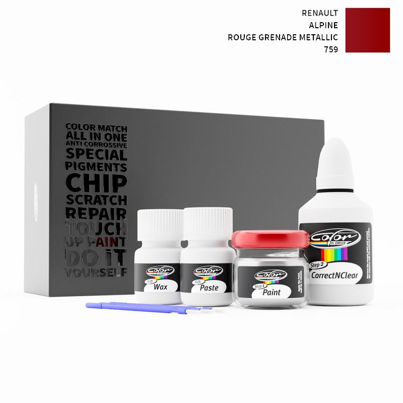 Si ha det til steinsprut og riper på din Renault Alpine Rouge Grenade Metallic 759. Med patentert tysk teknologi løser Color N Drive problemet ditt i 3 enkle trinn. Hvert KIT er spesialtilvirket i samsvar med bilprodusentens originale lakkfarge.