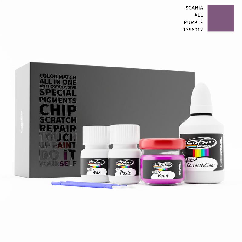 Si ha det til steinsprut og riper på din Scania ALL Purple 1396012. Med patentert tysk teknologi løser Color N Drive problemet ditt i 3 enkle trinn. Hvert KIT er spesialtilvirket i samsvar med bilprodusentens originale lakkfarge.
