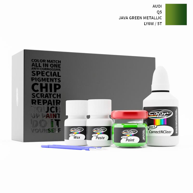 Säg hejdå till stenskott och repor på din Audi Q5 Java Green Metallic LY6W / 5T. Med patenterad tysk teknologi löser Color N Drive ditt problem i 3 enkla steg. Varje KIT specialtillverkas enligt din biltillverkares originalfärg.