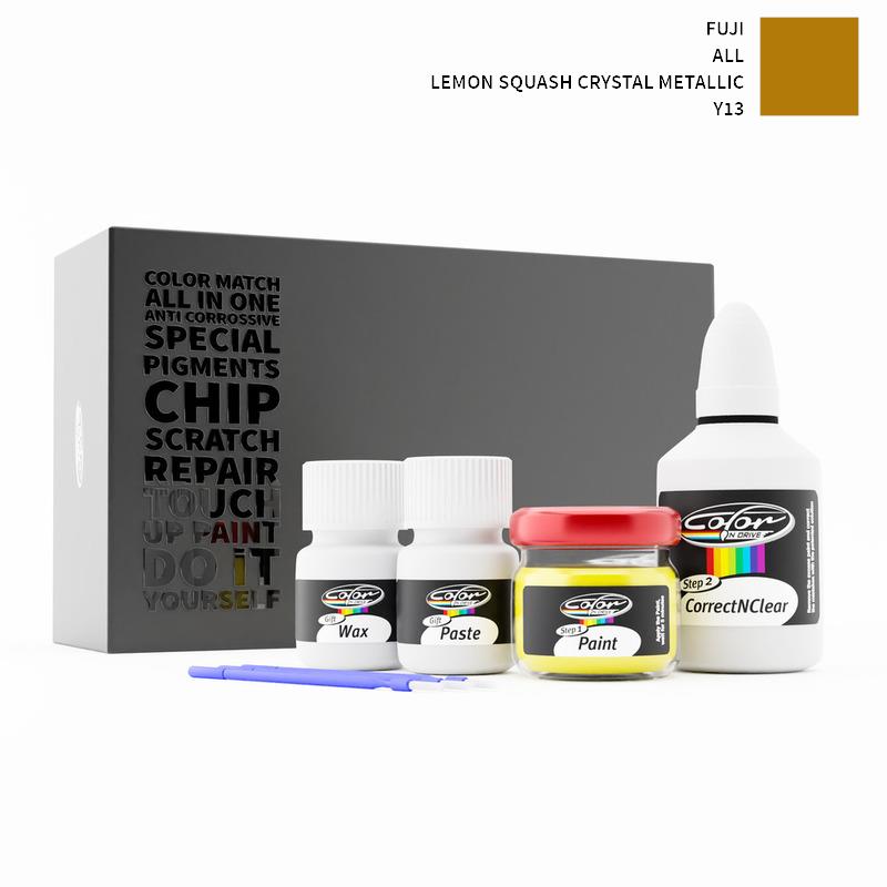 Vårt patenterade lösningssystem behandlar bara den speciella lacken vi blandar för din Fuji ALL Lemon Squash Crystal Metallic Y13 och påverkar inte din Fuji fabrikslack. Vi är säkra på att du inte kan skada färgen på din Fuji ALL Lemon Squash Crystal Metallic Y13 med denna metod och att du kan utföra reparationer som ett proffs på din Fuji med färgen LEMON SQUASH CRYSTAL METALLIC.