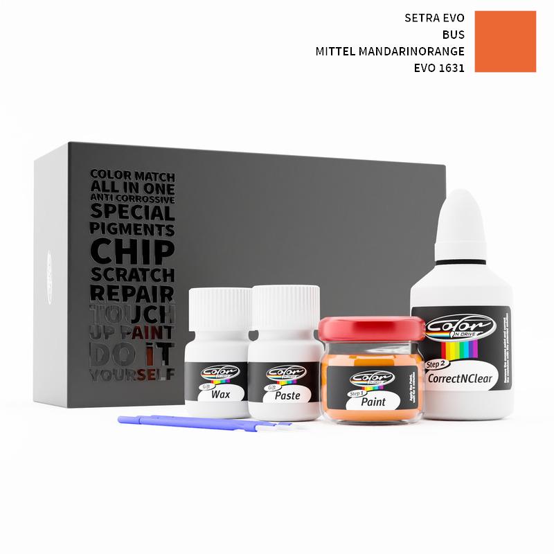 Säg hejdå till stenskott och repor på din Setra Evo BUS Mittel Mandarinorange EVO 1631. Med patenterad tysk teknologi löser Color N Drive ditt problem i 3 enkla steg. Varje KIT specialtillverkas enligt din biltillverkares originalfärg.